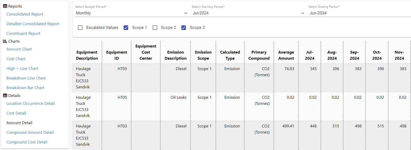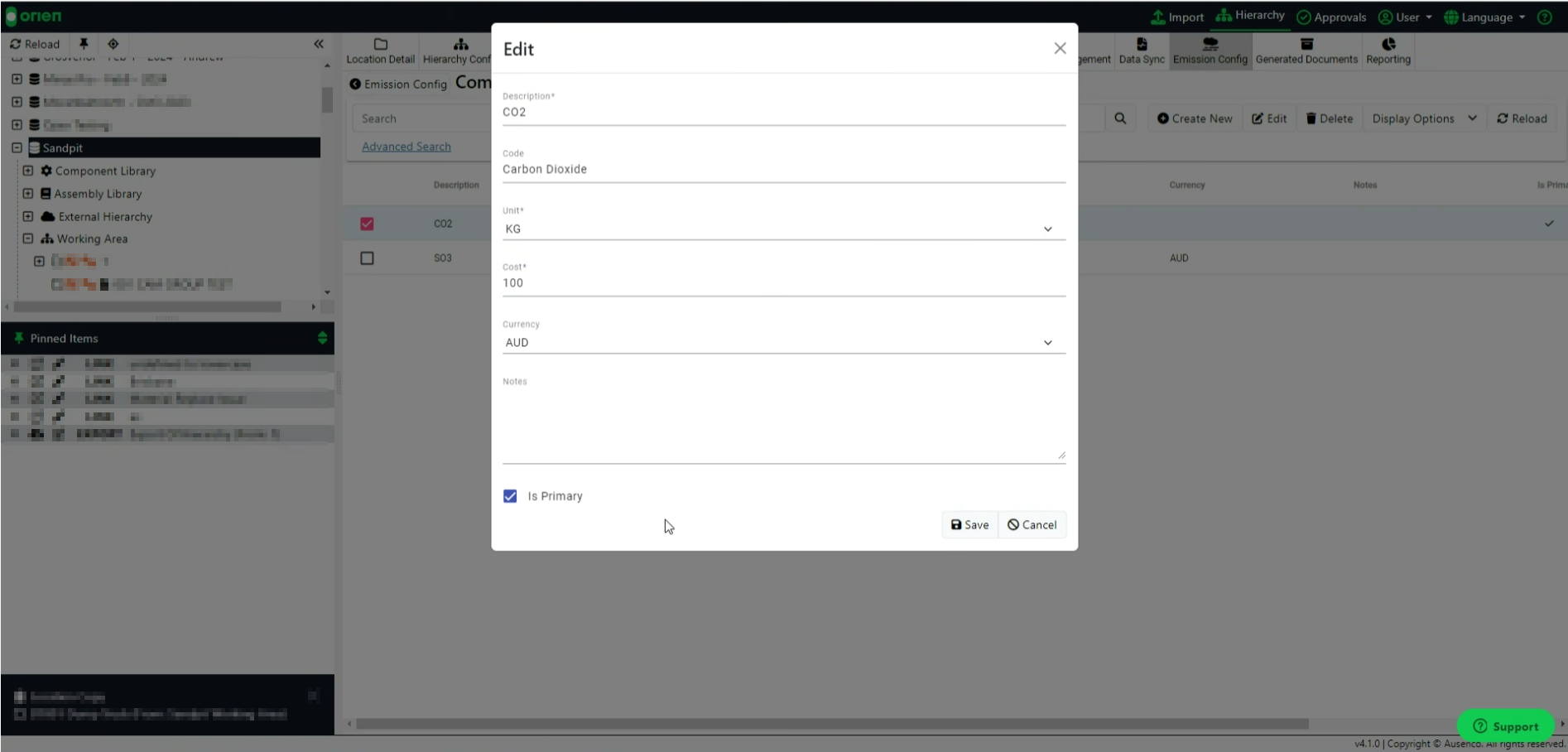 Set your own emission compounds with associated costs and units of measure. You can also select the primary compound for reporting.
